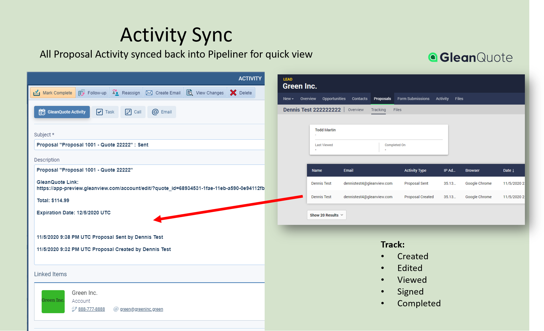 If your company sends quotes and proposals to your customers, our GleanQuote integration will help you simplify the process while increasing your ability to quote and close more business. All of your Sales CRM Leads, Contact, and Opportunity data is merged for use as variables. This saves time and reduces costly mistakes. The proposal activity syncs with the Coevera Activity.
