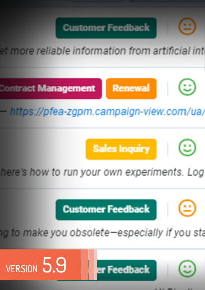 Coevera 5.9.0 introduces AI Email Categorization, which automatically categorizes emails captured in Coevera to set Tags and analyze Sentiment. Tags and sentiment are visible in the main Feeds tab as well as the Feeds tab for an individual record. Additionally, we've added Static Profiles which allows users to create a custom list of records which then remains static unless changed by the userUser User means a person who uses or consumes a product or a service, usually a digital device or an online service.. A fresh new Interactive Help tool is designed to help make Coevera even easier to use. This... Read More