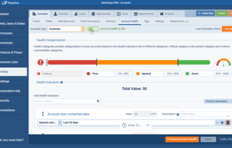 - Health Indicator Gaps: Using custom health indicators based on past purchase behavior (e.g., “Customer hasn’t placed orders for a long time”), the system can instantly flag an account as “Critical,” pointing to immediate upsell or retention opportunities.