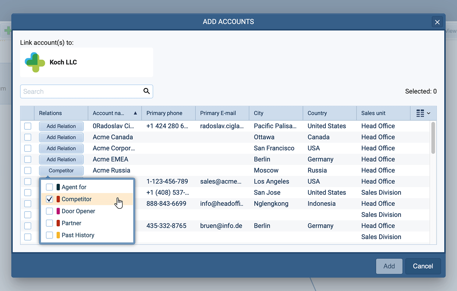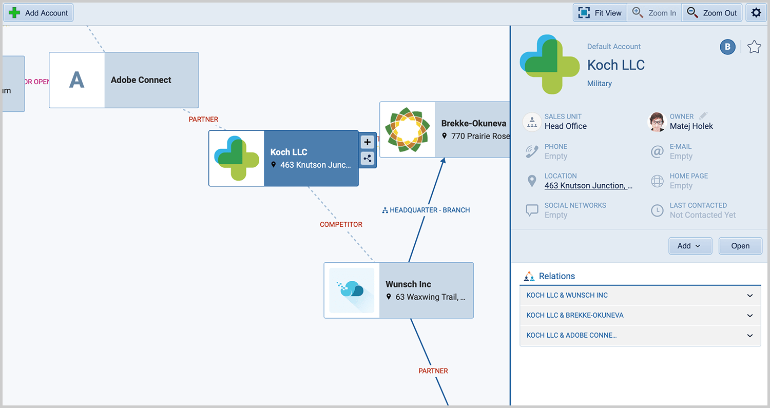 - Account Hierarchies: You can visually map entire corporate families, showing how subsidiary accounts are related to the Parent Account, providing a global view of opportunities and related documents.