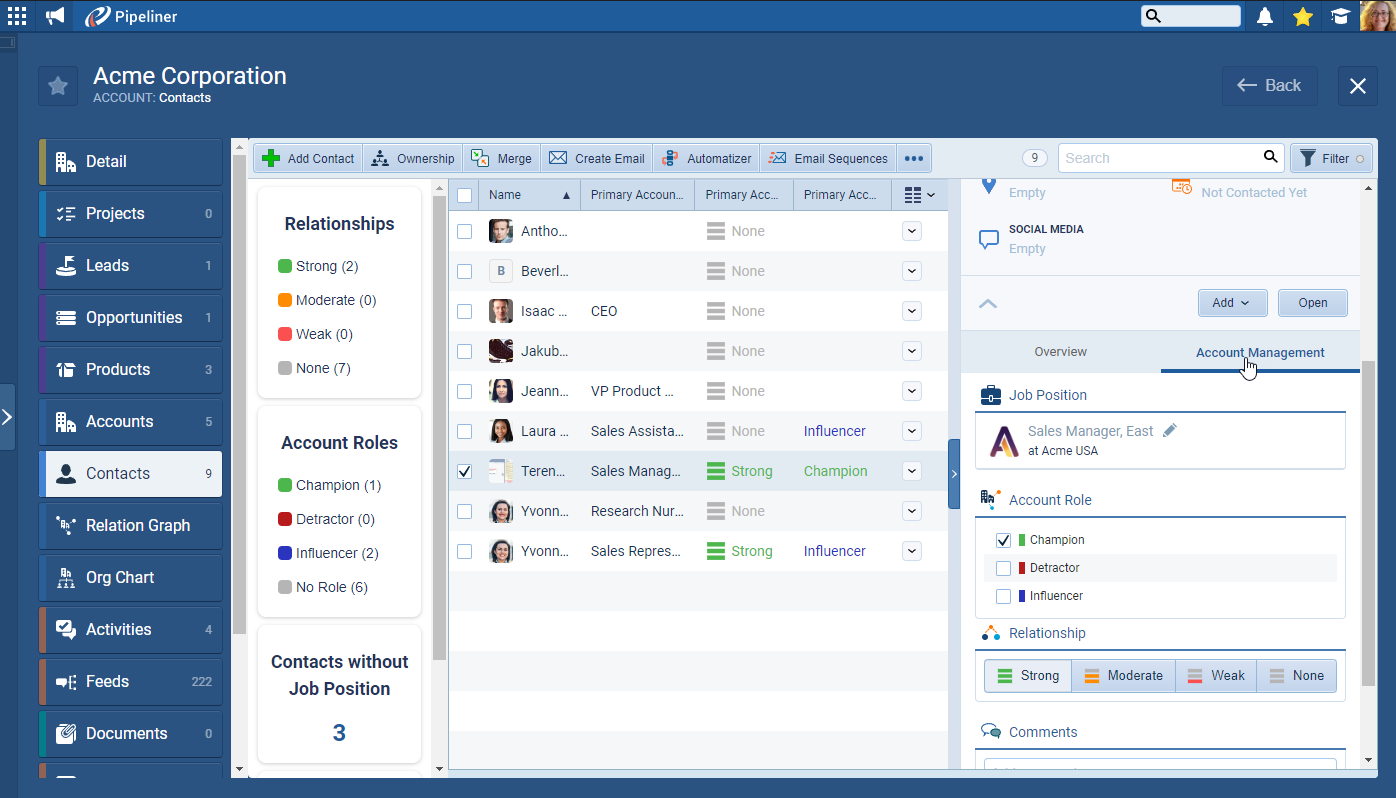 - Influence Relationships: “Door Opener” or “Key Competitor.”