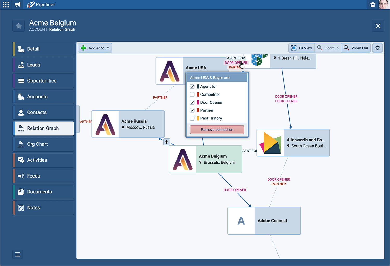 This is where true strategic power lies. With the Relation Graph, you instantly cut through complexity to see who influences whom, identify potential shared risk, and pinpoint high-value “Door Openers” that leadLead Lead refers to a prospect or potential customer (who can be an individual or organization) that exhibits interest in your service or product; or any additional information about such entity. to warm introductions. You gain the deep context required to build more effective, targeted strategies that close deals faster and cement long-term loyalty.