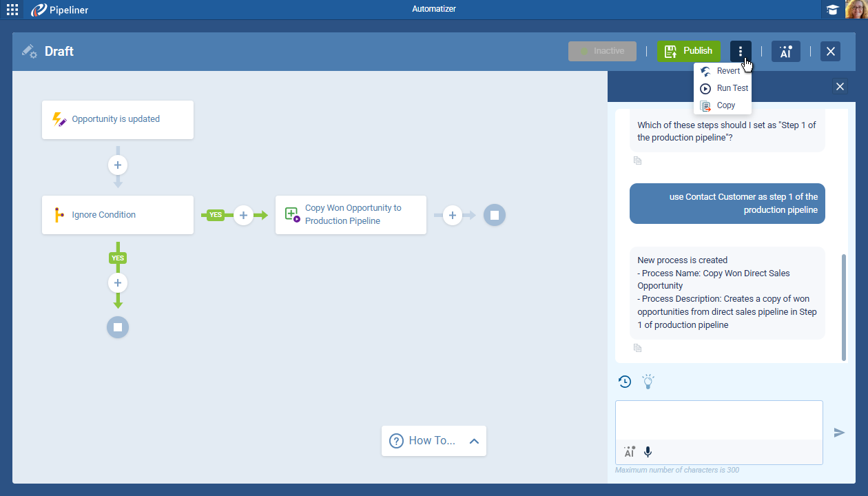 Tell the AI exactly what you want to achieve using natural language prompts (you can type or even speak your request), and watch your entire automation logic come to life in seconds. It’s not just faster—it’s the more innovative, more intuitive way to deploy your sales strategy.
