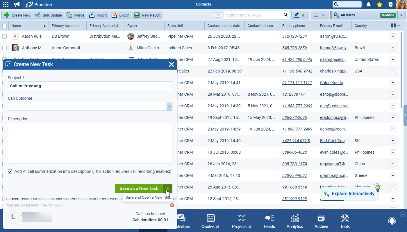 - Streamlined Task Creation: Upon call completion, reps can choose to “Save as a New Task” and receive a notification when the AI-generated summary is ready. No more manual data entry; just a perfectly documented interaction, ready for immediate follow-up.