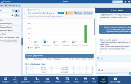 - Instant Actionable Insights: Don’t just view data—act on it. Click any chart element to drill down to the underlying records, then take immediate action like updating an opportunity or following up on a leadLead Lead refers to a prospect or potential customer (who can be an individual or organization) that exhibits interest in your service or product; or any additional information about such entity..