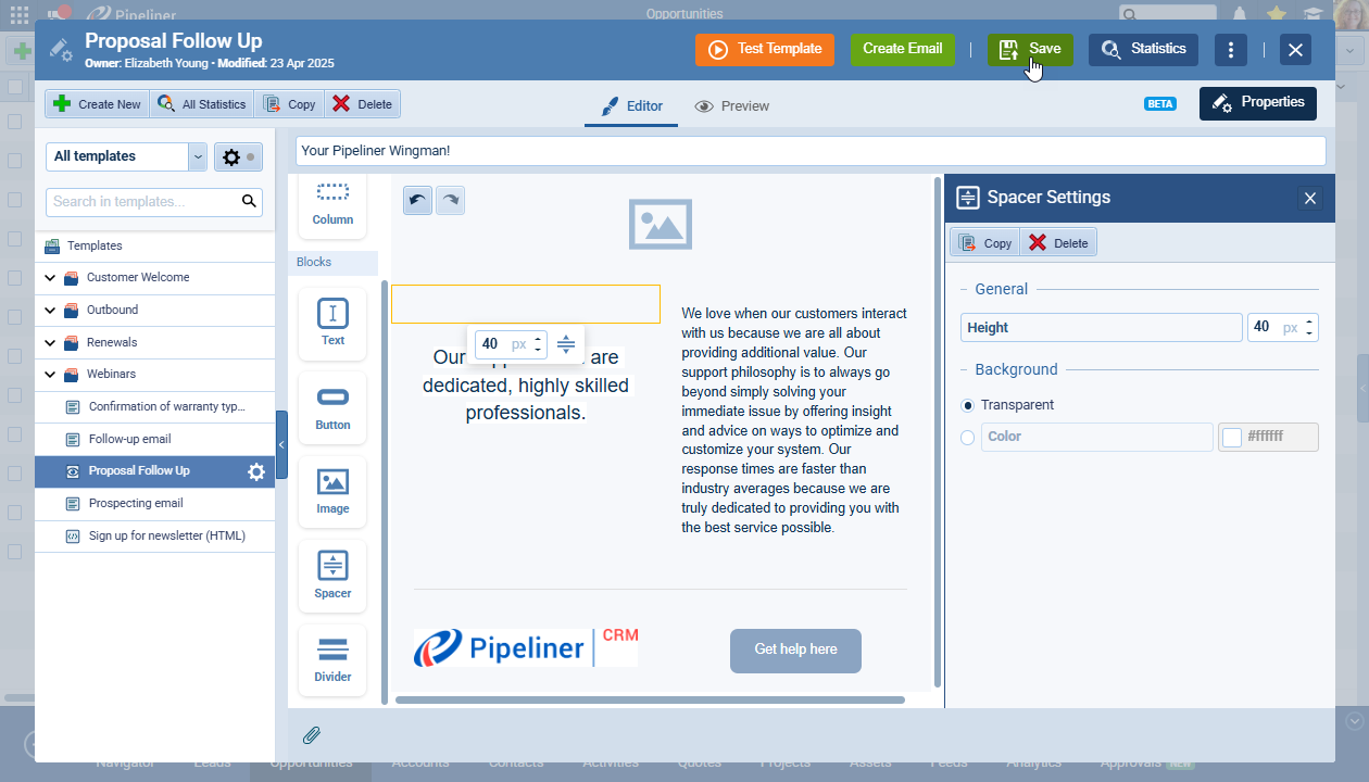 Your perfectly crafted, tested template is ready to deploy into your sales workflow.
