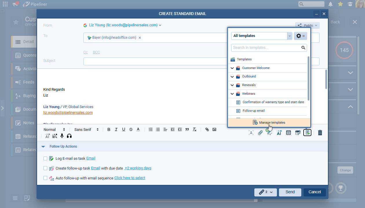 - Templates can be used when sending a single email, deployed to a filtered list, or integrated directly into sophisticated sales processes, such as Automatizer or Email Sequences.