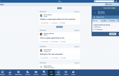 Yes. Every email communication is automatically captured and connected to the proper records. Emails are archived to the Feeds of relevant contacts and accounts. You can also link an email to a specific Opportunity or LeadLead Lead refers to a prospect or potential customer (who can be an individual or organization) that exhibits interest in your service or product; or any additional information about such entity. with a single click before sending it, ensuring all future activity is tied to that record and eliminating the need for manual data entry.