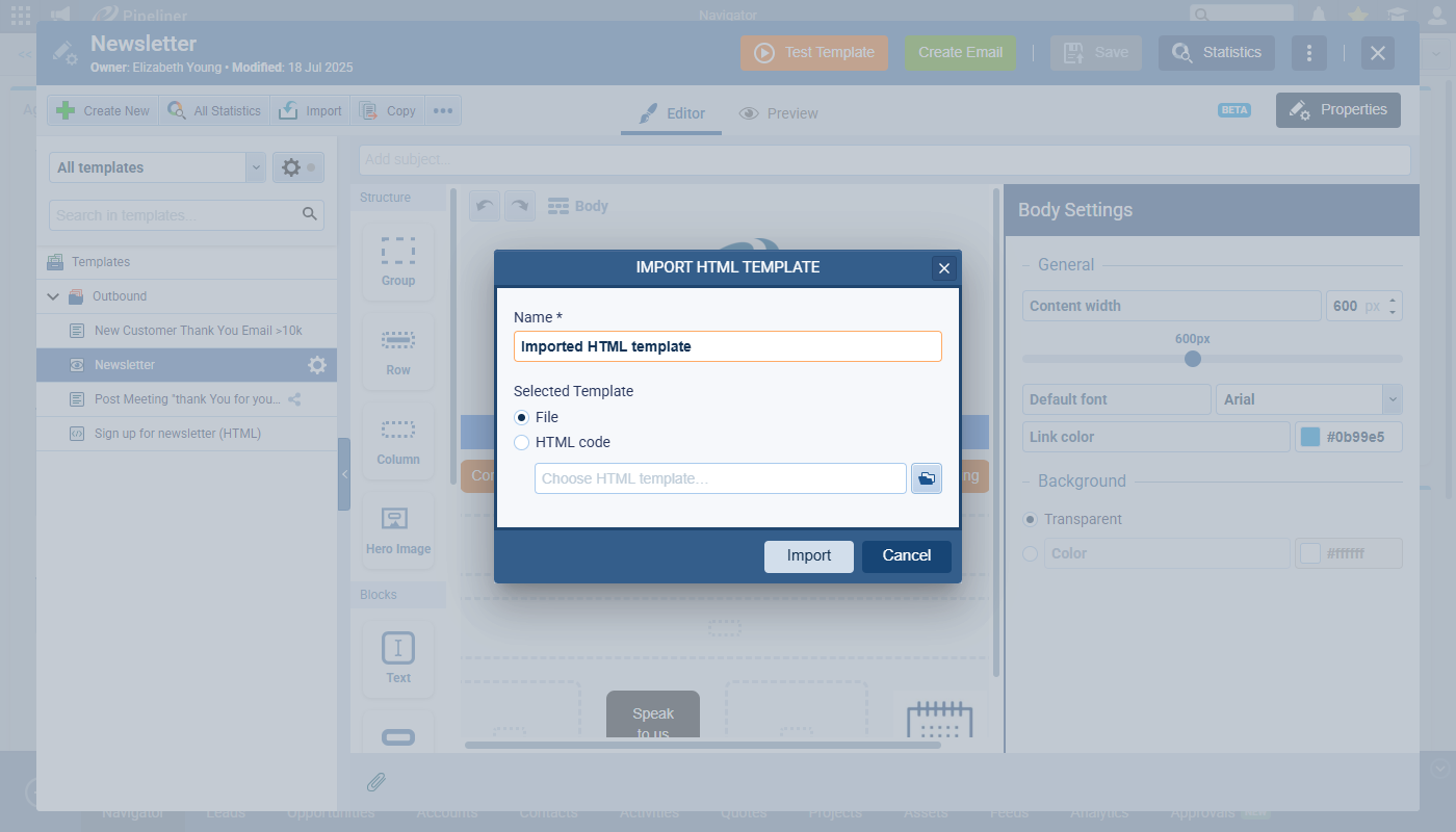 Yes. Users can create or use HTML email templates. Coevera allows you to search for and insert CRM data fields directly into the HTML code, where they are visually highlighted for easy editing.