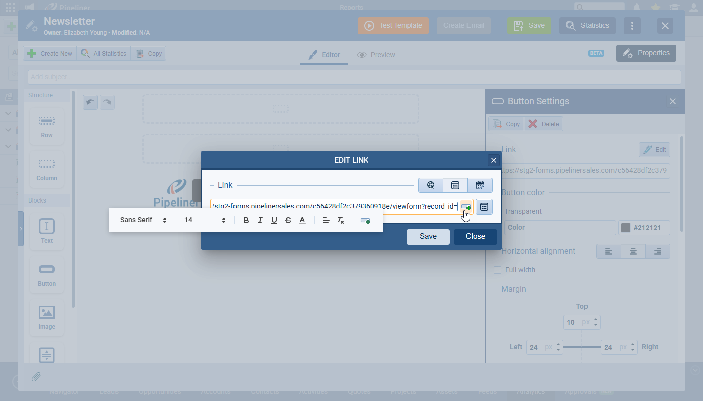 - Intelligent Search: Forget scrolling through endless lists. Use the “@” or “#” symbols within the email editor to instantly search for and insert the fields you need.