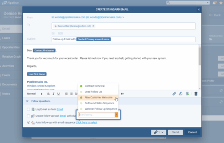 Send the right message at the right time, every time. Whether you are welcoming a new customer, chasing a stalled deal, or inviting prospects to an event, sequences ensure your brand voice remains consistent. Because emails are sent via your own Office 365 or Gmail integration, they land in the primary inbox, not the “Promotions” tab.