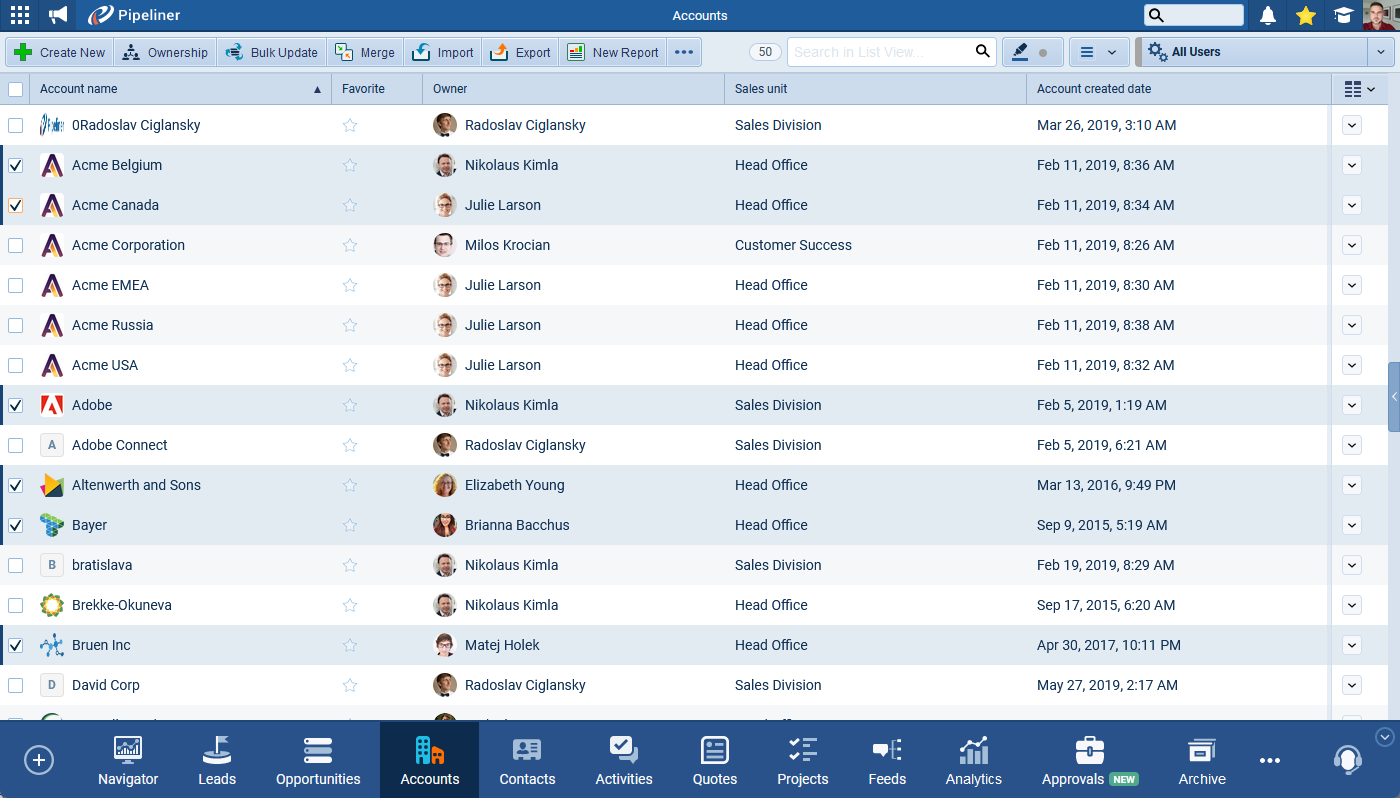 You have complete data mobility across all your core sales entities. You can export Accounts, Contacts, Leads, Opportunities, Quotes, Archives, and detailed Reports.