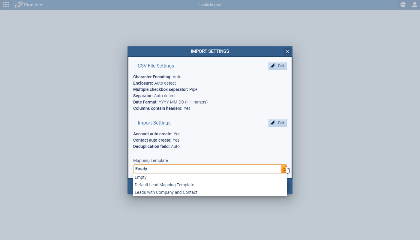 Yes, you can save your import settings and field mappings as a reusable Import Template. This allows you to make regular uploads, like monthly lead lists, a one-click process. You can even share these templates with your team.