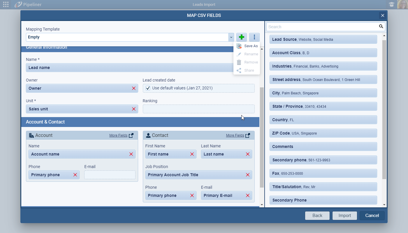 - Save and Reuse: Once you’ve perfected a field mapping, you can save it as a reusable template. The next time you upload the same data source, select the saved template, and the import process takes seconds.