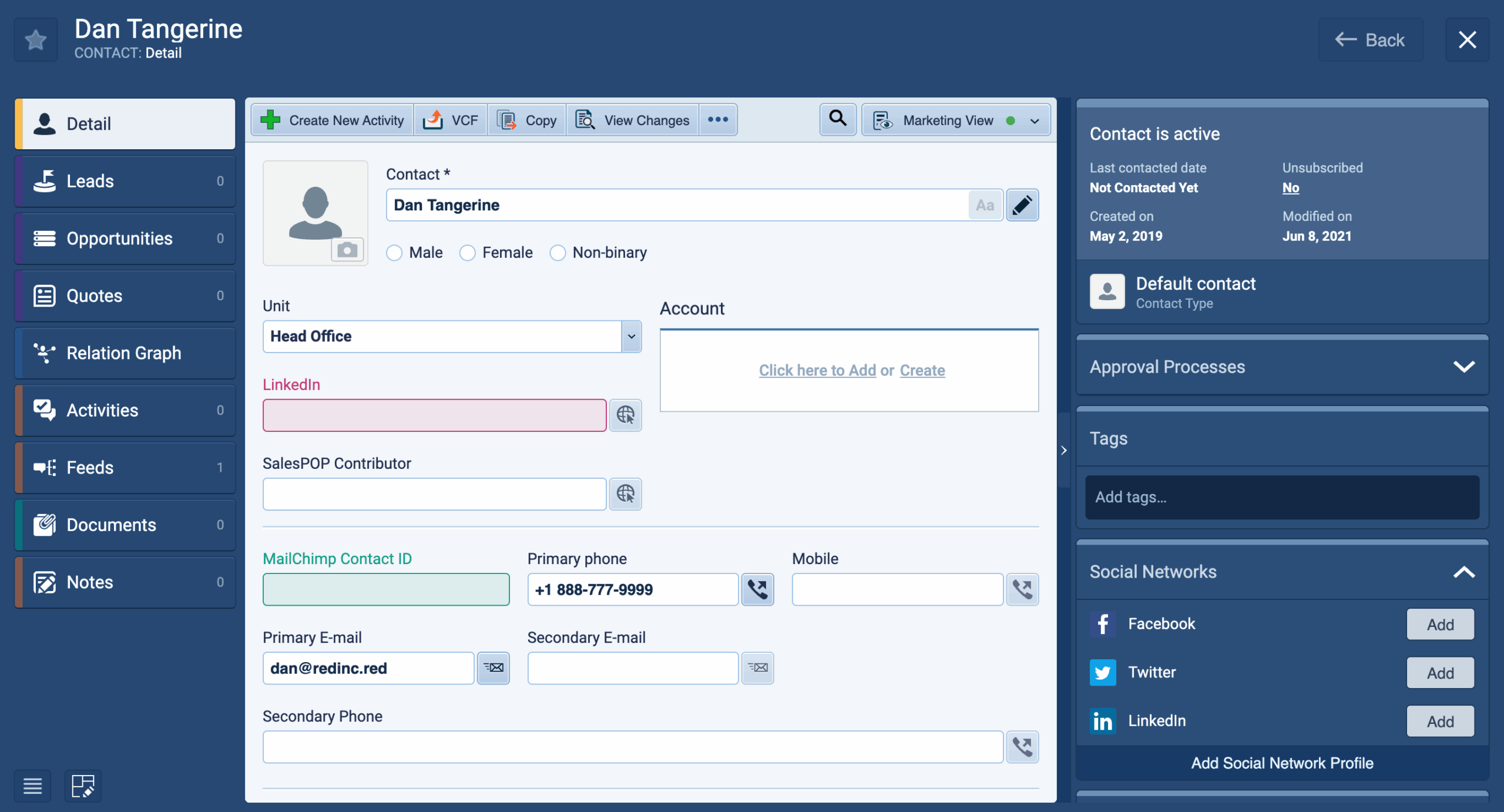 - For MarketingMarketing Marketing is the field, set of actions, or practice of making a product or service desirable to a target consumer segment, with the ultimate aim of effecting a purchase.: Switch to a view highlighting LeadLead Lead refers to a prospect or potential customer (who can be an individual or organization) that exhibits interest in your service or product; or any additional information about such entity. Source, Campaign History, and Opt-In status.