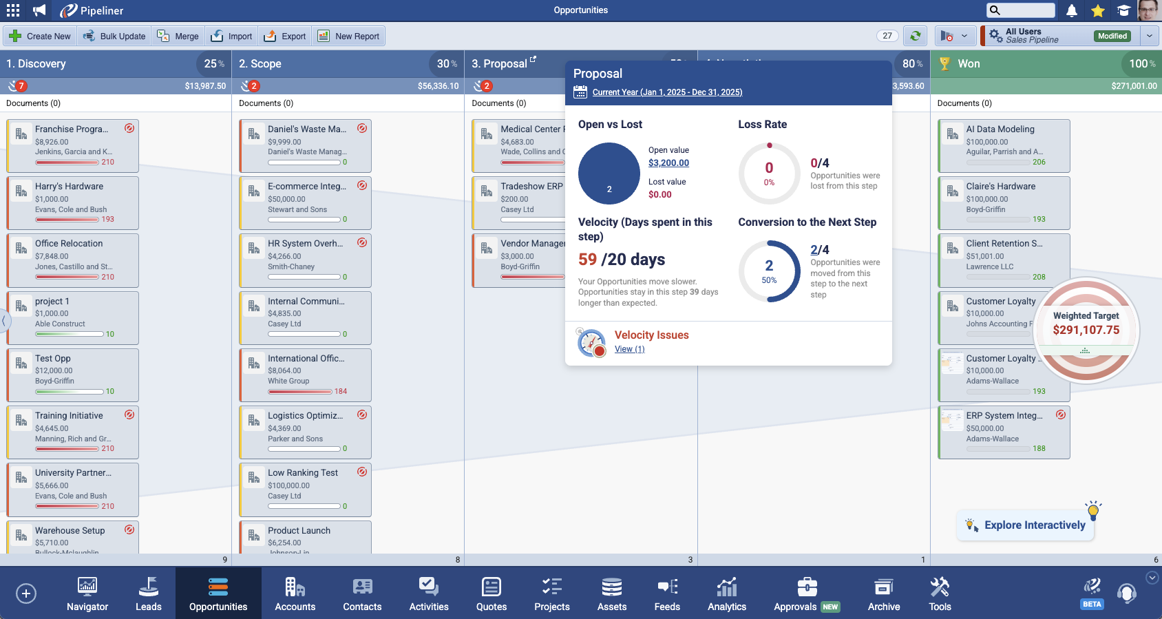 - Efficiency and Speed with Accelerated Sales Velocity: Stale Deals Are Profit Killers. Implement Velocity (time limits) on specific steps to automatically flag stalled opportunities. Keep deals flowing, shorten your sales cycle, and maximize pipelinePipeline Sales pipelineis a visual representation of the stage prospects are in the sales process. throughput.