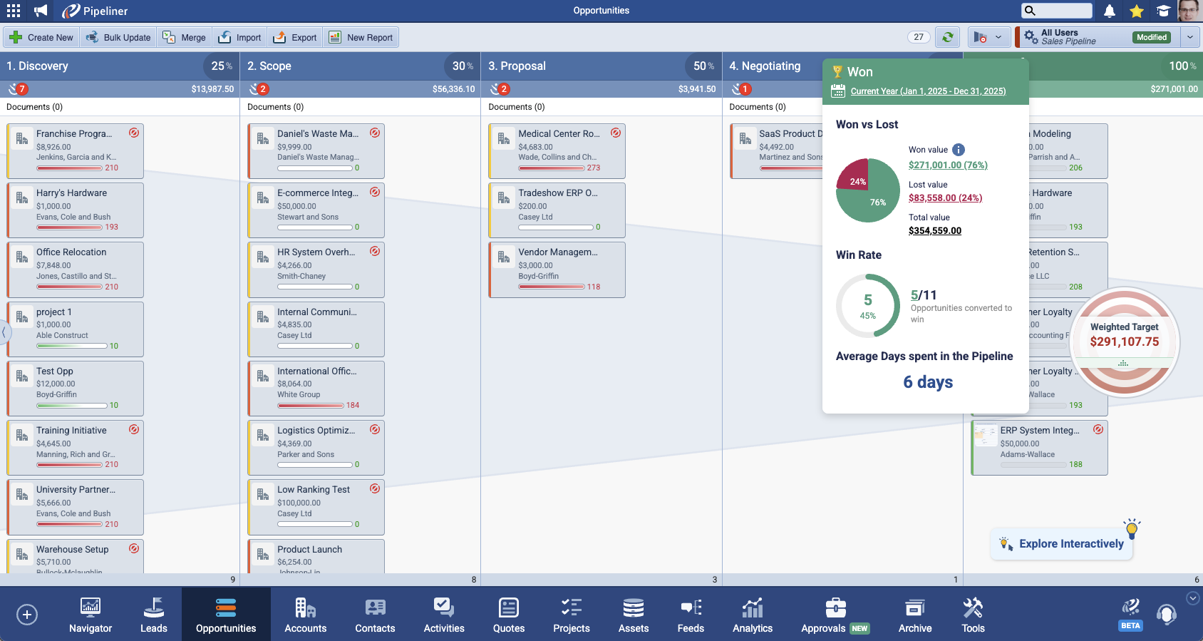 - Opportunity: A lead that has been qualified and validated as having the potential to purchase your product or service. Once qualified, the deal is assigned a monetary value and begins its journey through the structured pipeline stages, providing predictability and a focus for your sales team.