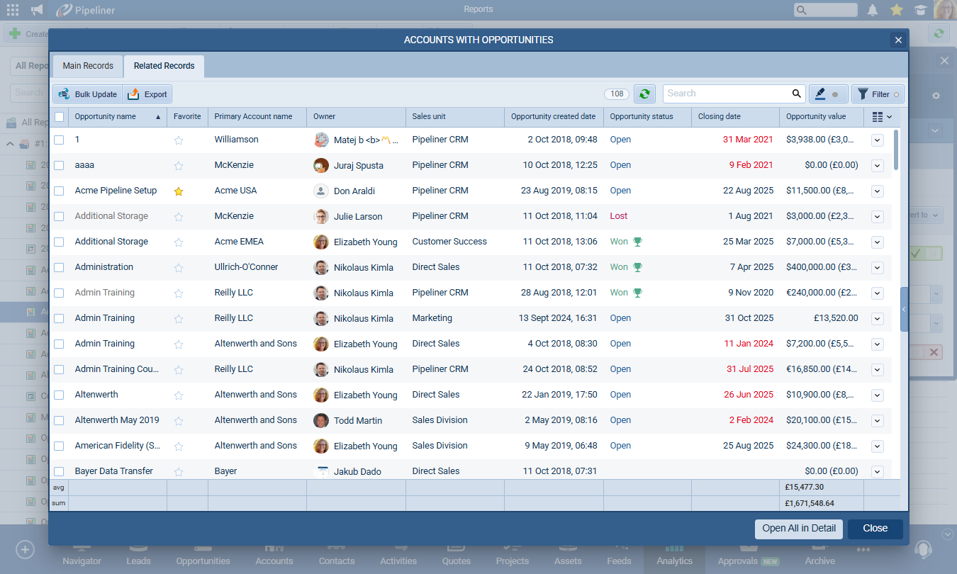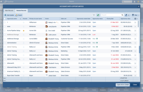 User Advantage: See a high-value cell in your report? Click it to view every individual Opportunity, Lead, or Account that contributed to that total, allowing for immediate investigation and action.
