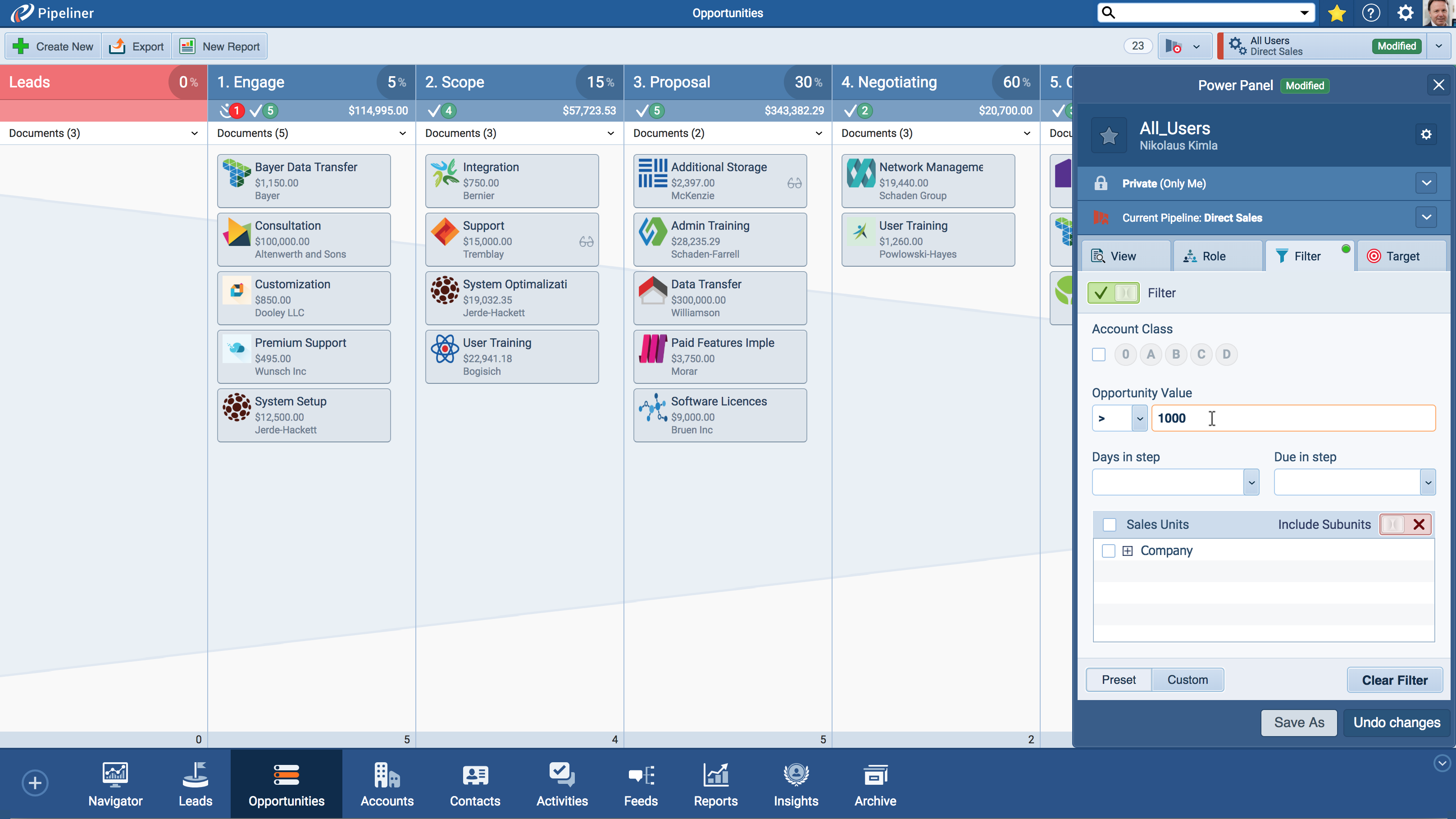 - Simple Filters: Quickly find all opportunities in “California” with a value over “$50,000”.