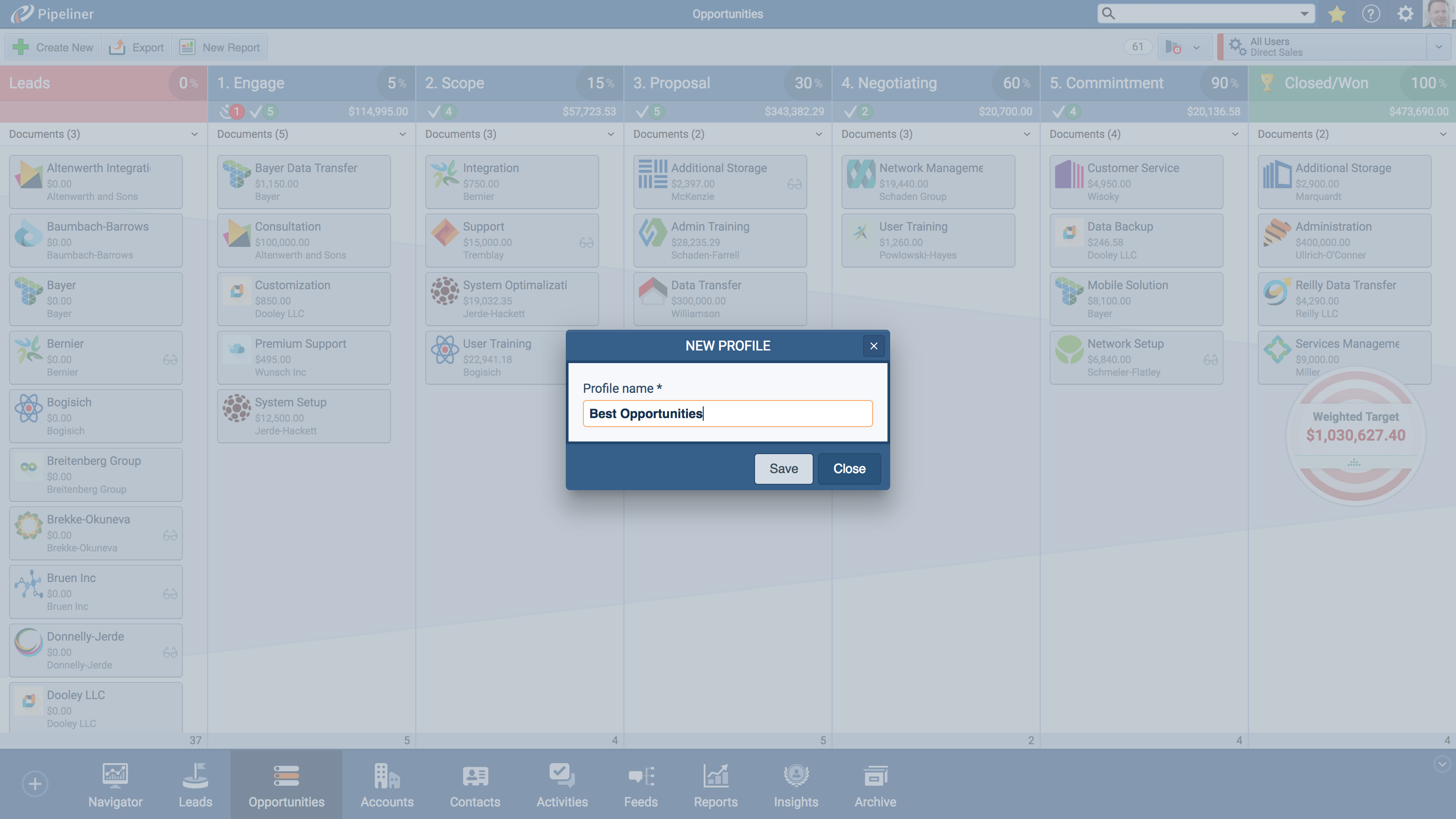 - Target Tab: Visualize and Track Your Goals. Don’t let your targets get buried in spreadsheets. Integrate your sales goals directly into your pipeline view. A Profile can automatically visualize your progress against weighted, ranked, or unweighted targets, keeping your objectives front and center every single day.