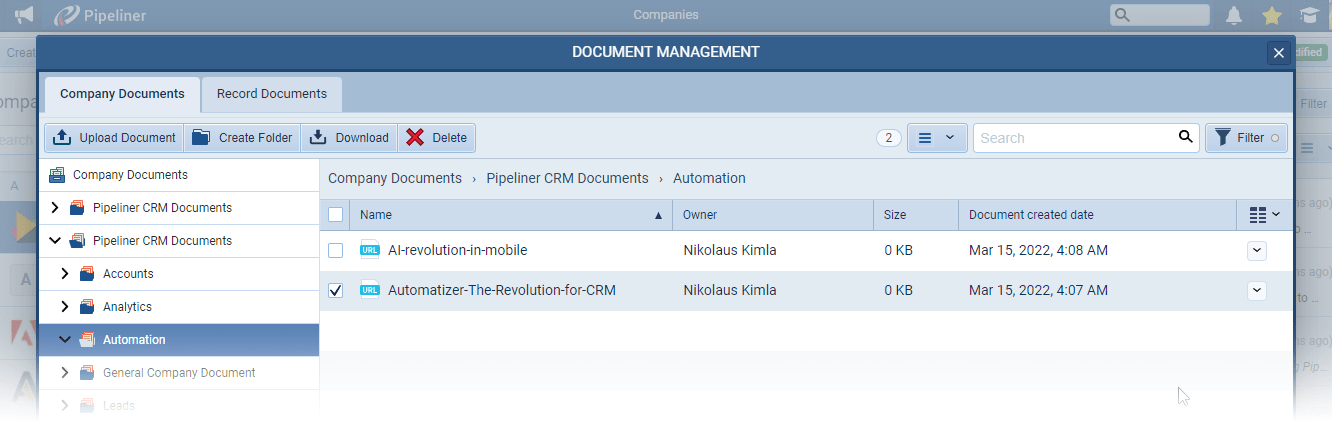 - Documents Tab: Access the file from the dedicated tab on the open record.