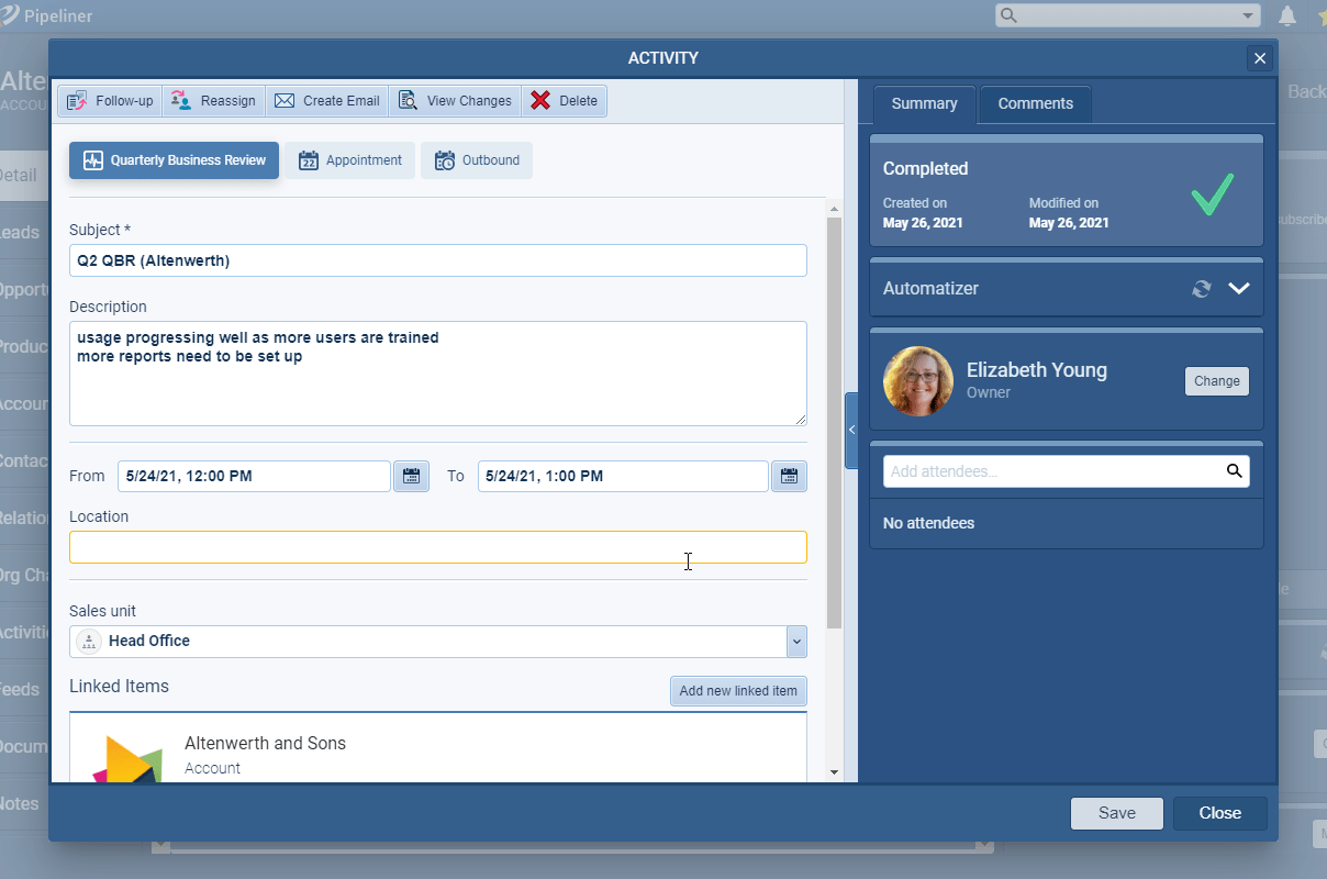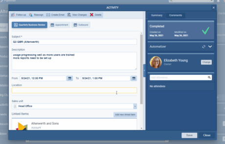 The Challenge: Before a renewal call, the Account Manager has to dig through months of emails to find the notes from the last Quarterly Business Review (QBR). The Coevera Solution: Create an Appointment Lookup field named “Last QBR” directly on the Account form. The Benefit: This creates a direct portal to the highest-priority meeting notes, accessible instantly from the main dashboard.