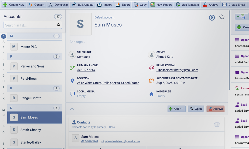 Stop hunting for data. Coevera’s Compact View consolidates leads, accounts, and history into one interactive screen. Eliminate clicking, see the full story instantly, and close deals faster.