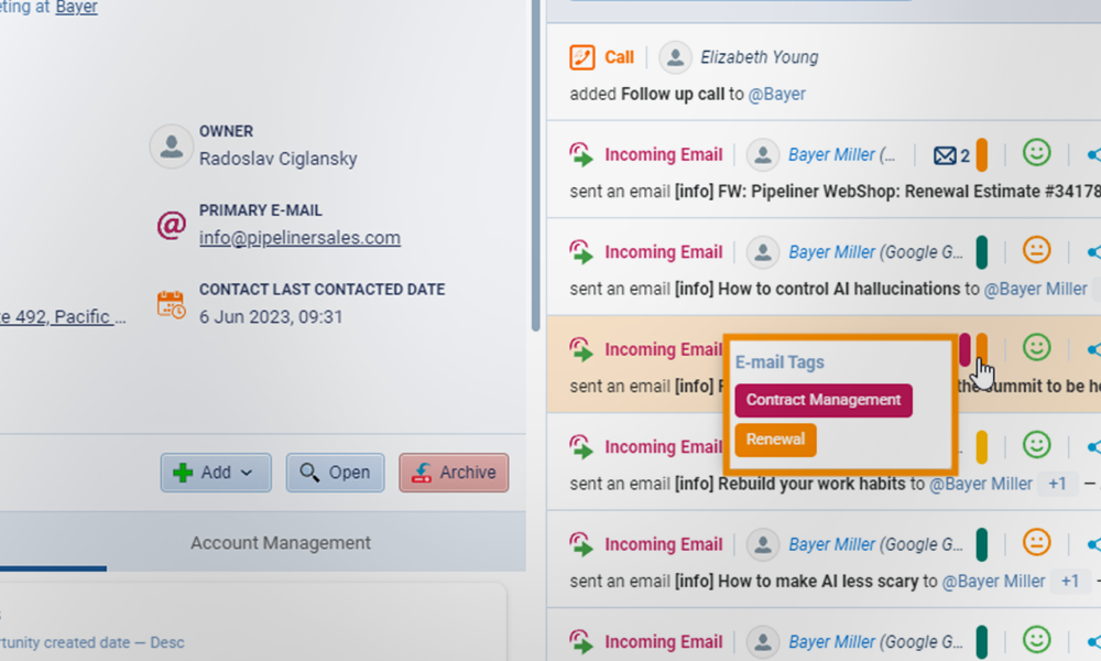 Transform email noise into sales intelligence. Coevera’s Voyager AI categorizes messages and analyzes sentiment automatically, helping you prioritize high-value deals and at-risk accounts.
