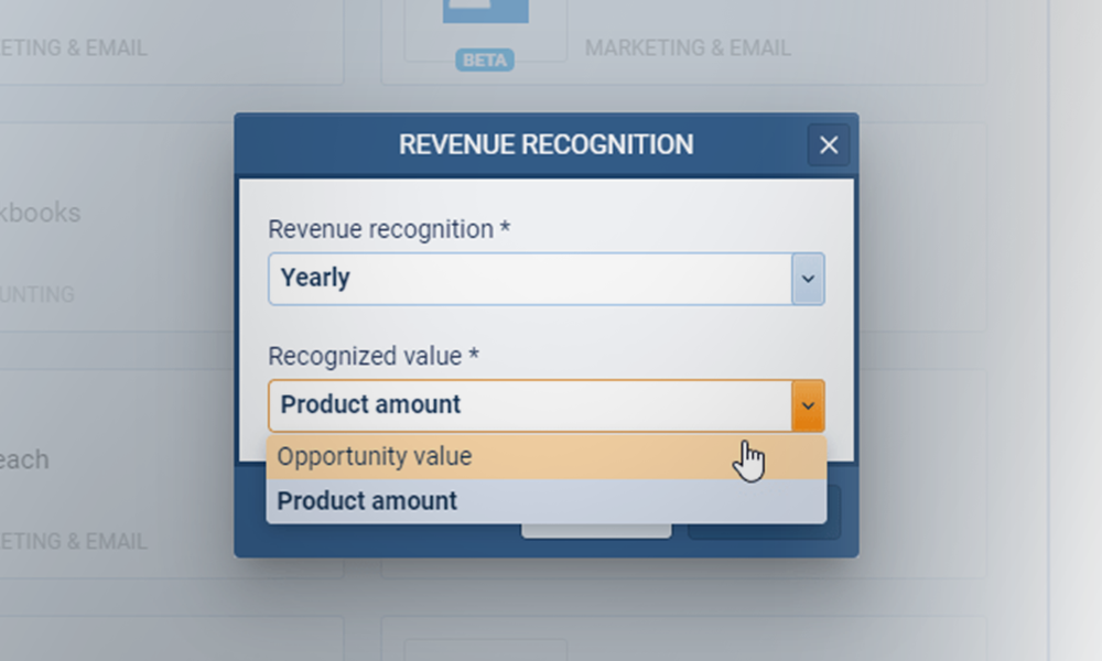 Stop guessing your future income. Coevera's Revenue Recognition schedules opportunity and product revenue over time (monthly, quarterly, yearly), giving you unparalleled accuracy for forecasting and reporting.