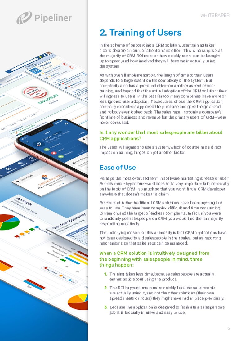 - The same is true for the length of time it takes to train your users. This is especially significant if a CRM application is complex and has a long training runway. The most important CRM users are your sales reps. How long can your company afford sales rep downtime while they’re training on CRM, even part time? Another factor is that salespeople are slowed down in sales velocity as they’re having to train, while they’re forced to work back and forth between existing solutions and the new CRM solution.
