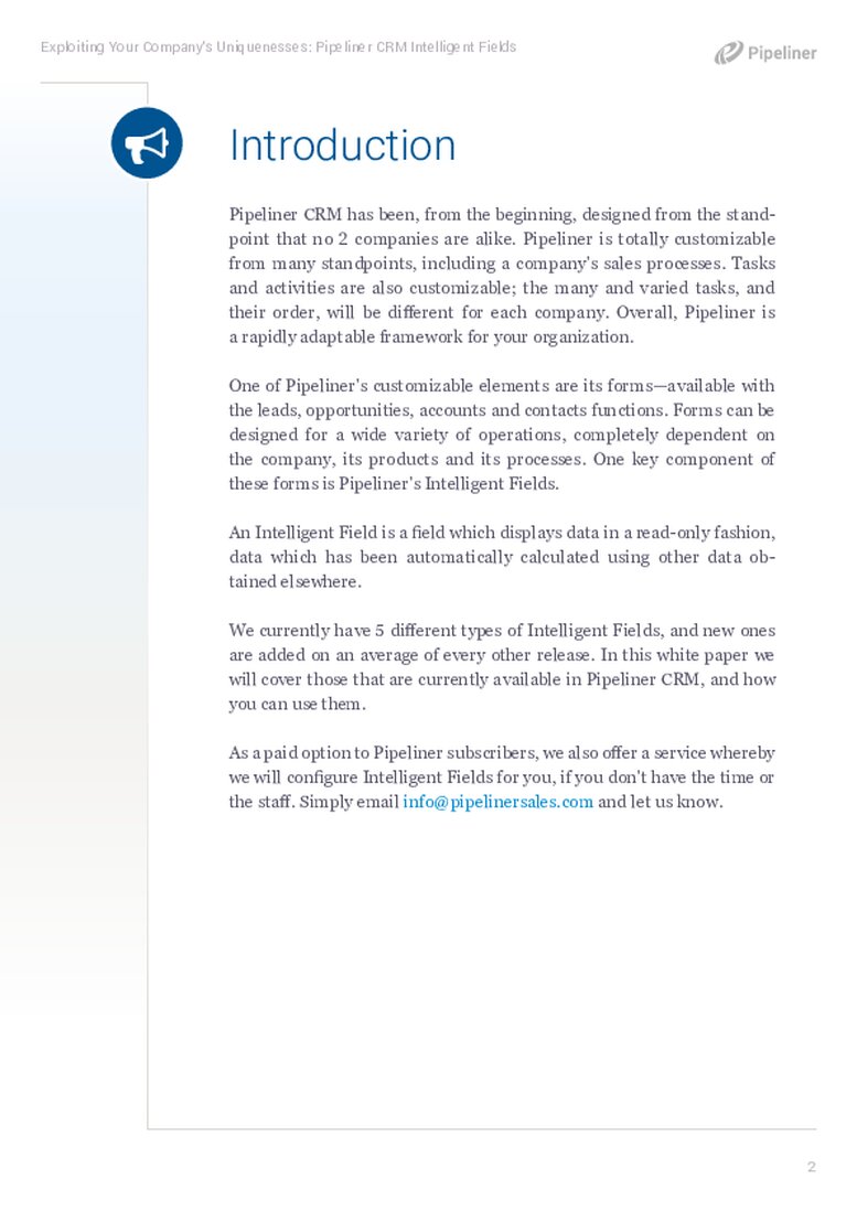 Part of a customizable CRM, an Intelligent Field is a field which displays dataData Data is a set of quantitative and qualitative facts that can be used as reference or inputs for computations, analyses, descriptions, predictions, reasoning and planning. in a read-only fashion, data which has been automatically calculated using other data obtained elsewhere. Coevera has been, from the beginning, designed from the standpoint that no 2 companies are alike. Coevera is totally customizable from many standpoints, including a company’s sales processes. Tasks and activities are also customizable; the many and varied tasks, and their order, will be different for each company. Overall, Coevera is a rapidly adaptable framework for your organizationOrganization Organization is a cohesive group of people working together and formally bound by a shared identity (e.g., one team, company, club, etc.) and a common purpose (e.g., business growth, athletic victory, etc.)..