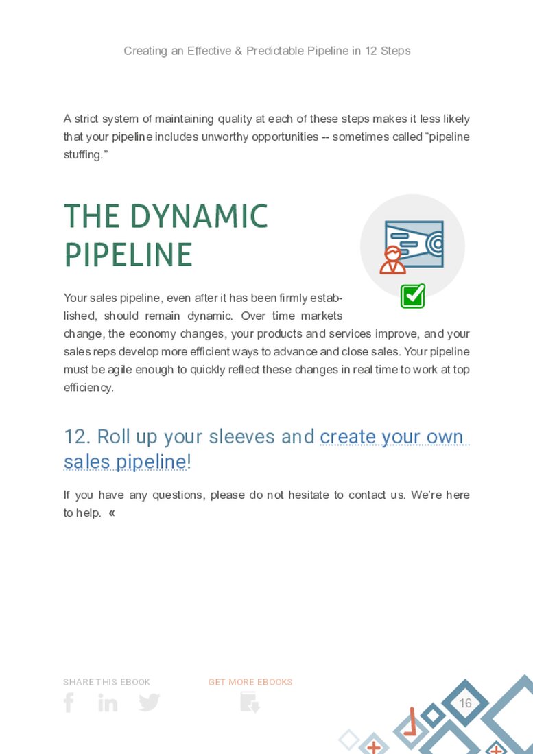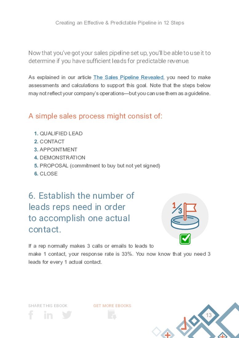 Before “12 Steps to Creating an Effective & Predictable PipelinePipeline Sales pipelineis a visual representation of the stage prospects are in the sales process.,” these techniques were scattered across the Internet. Now, with the help of Sales TrainingSales Training Sales Training is the process of improving the skills, behavior and mindset of sales professionals to upgrade their selling performance. Expert John Golden, we’ve put them all in one place.