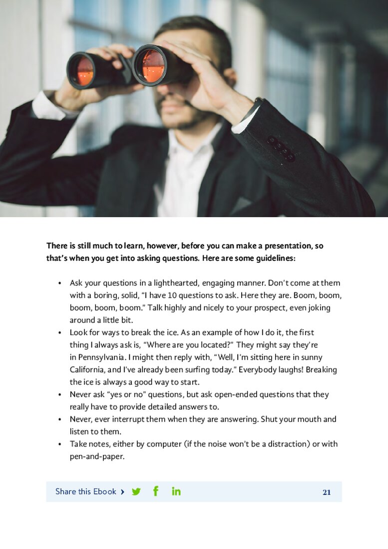 Having the software well learned—or learning it while you’re studying this ebook—will already help you be a better salesperson. The program in this ebook will add to that. It will help you to be even more skilled and help you create your own business.