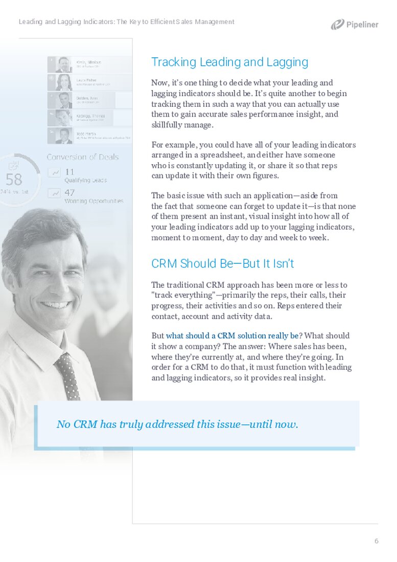 This white paper explains how sales management must be conducted through the right combination of leading and lagging indicators, so that management is precise, and catches errors or issues well before they affect your final results.