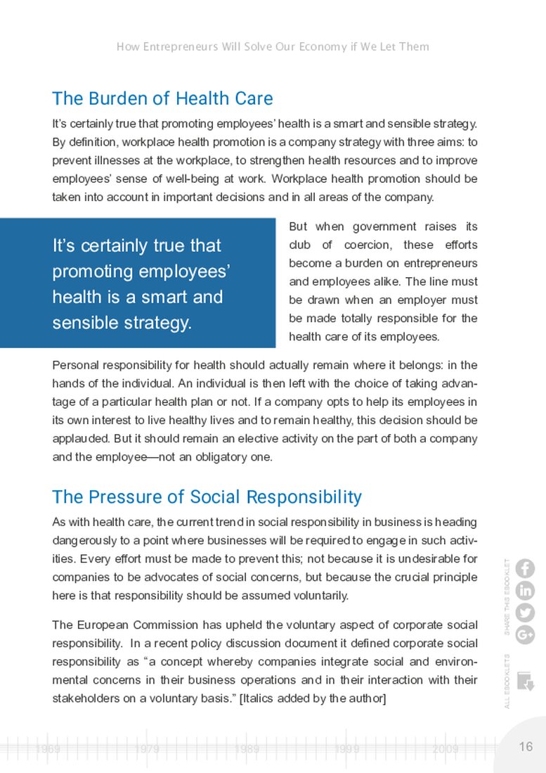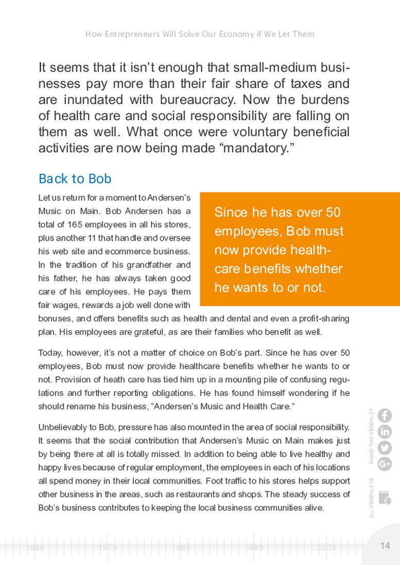 It seems that it isn’t enough that small-medium businesses pay more than their fair share of taxes and are inundated with bureaucracy. Now the burdens of health care and social responsibility are falling on them as well. What once were voluntary beneficial activities are now being made “mandatory.”