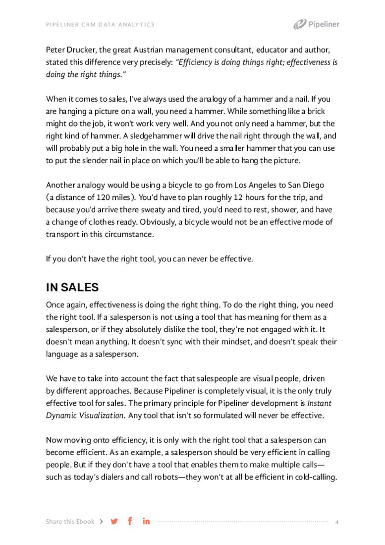 Once again, effectiveness is doing the right thing. To do the right thing, you need the right tool. If a salesperson is not using a tool that has meaning for them as a salesperson, or if they absolutely dislike the tool, they’re not engaged with it. It doesn’t mean anything. It doesn’t sync with their mindset and doesn’t speak their language as a salesperson.