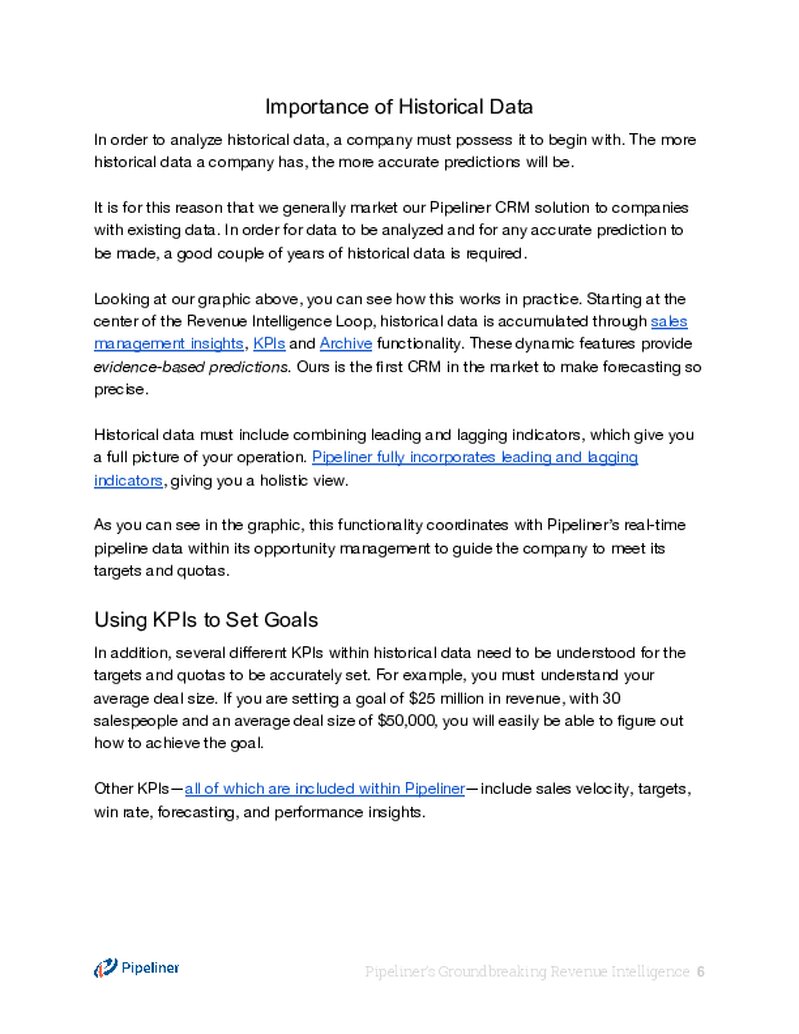 This chapter discusses the power of combining old sales data with real-time pipelinePipeline Sales pipelineis a visual representation of the stage prospects are in the sales process. information.