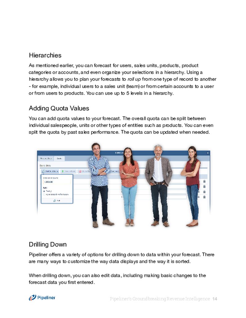 It also covers features like team hierarchies, adding goals, drilling down into data, and sharing forecasts — all without needing extra setup.