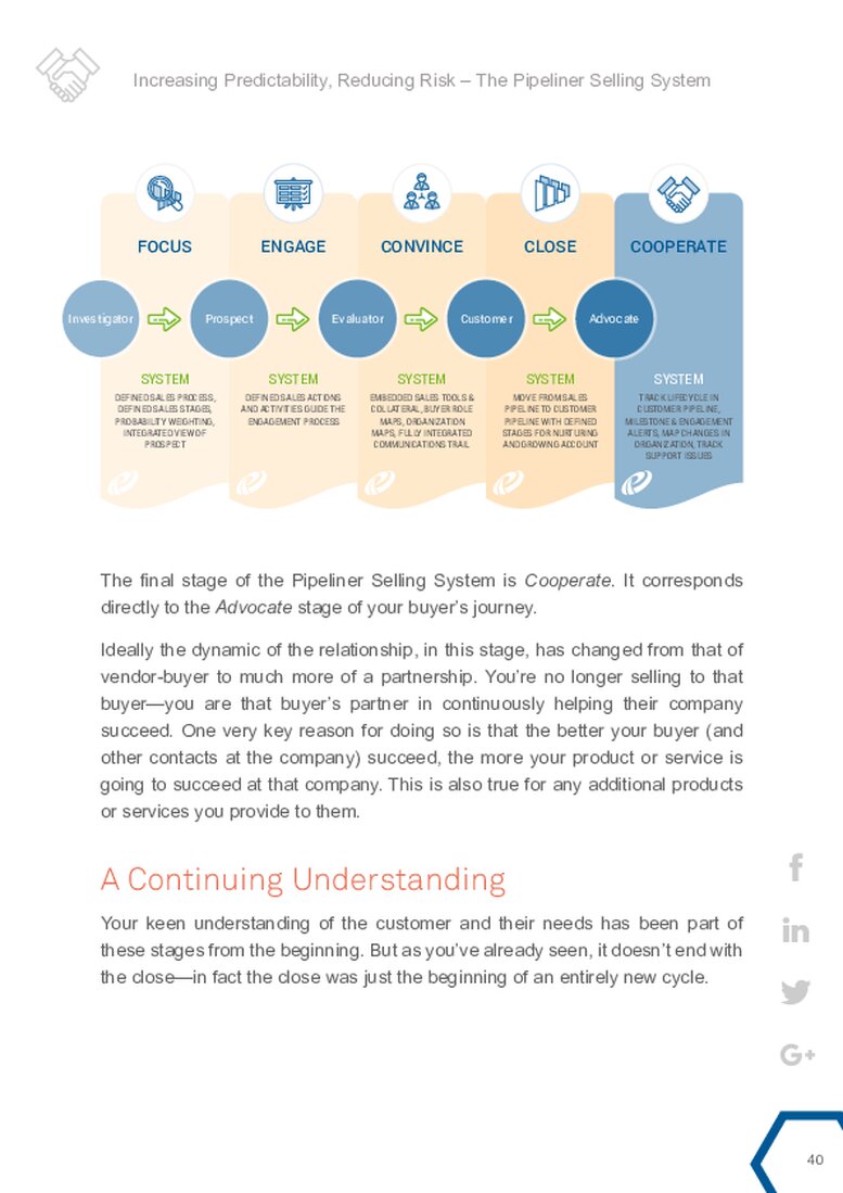 - As the new process is applied to the customer, they are targeted for Advocate status. The phase of the Selling System that applies here is Cooperate, because advocacy is a collaborative process. The Coevera Selling System is comprised of the common denominators to most or all sales processes. It is designed to reduce your risk and leverage your opportunities.