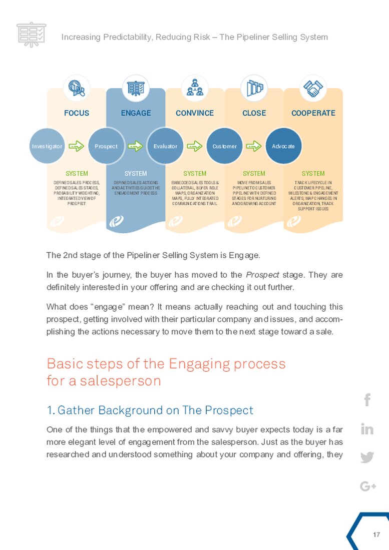 - Following the investigation stage, the buyer becomes a Prospect and the salesperson enters the next phase of the Selling System, which is Engage.