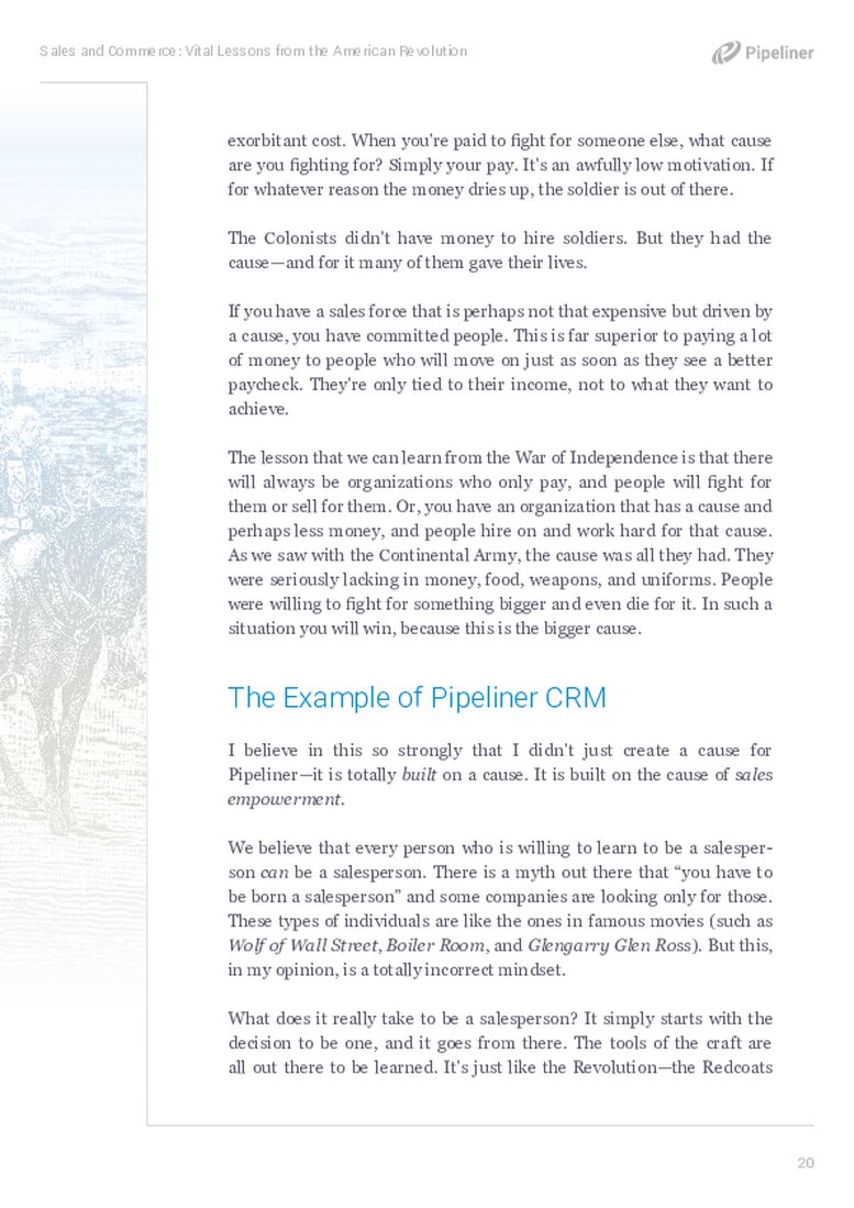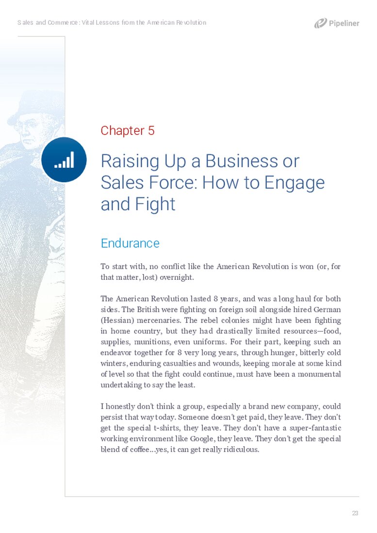 The first lesson we can learn here is this: Starting up any new enterpriseEnterprise Enterprise (in the context of sales) is a relatively large organization typically composed of multiple levels, locations, and departments which need multi-layer software systems that support collaboration across a large corporate environment. or even a sales force is never easy. Anyone who’s ever started something–a state, an enterprise, or any other ongoing concern–usually has quite a story to tell. Growing it is generally somewhat painful. There will be virtual casualties. Anyone who sets out with a goal such as this does so with the hopes that it will all go smoothly, that everyone will be happy and get along. This is never the case, and the War of American Independence shows us how something great comes to be built. It is painful and costly.