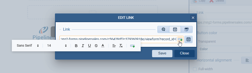 Users can now select and personalize an Online Form from an open record’s Detail page and copy the link. Using this option opens a list of currently active online forms from the same entity as the opened record. The user can select the relevant online form and quickly get a personalized link (for the opened record) that will be automatically copied to the clipboard