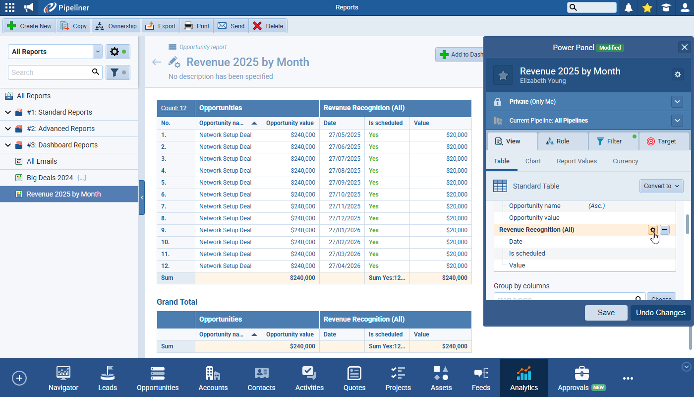 We’ve improved the reporting on Opportunities using Revenue Recognition. Users can select a new related entity – Revenue Recognition – when adding columns to their Opportunity report. The available fields for this linked entity are Date, Value and Is Scheduled and these fields can be used in all types of reports and dashboards.