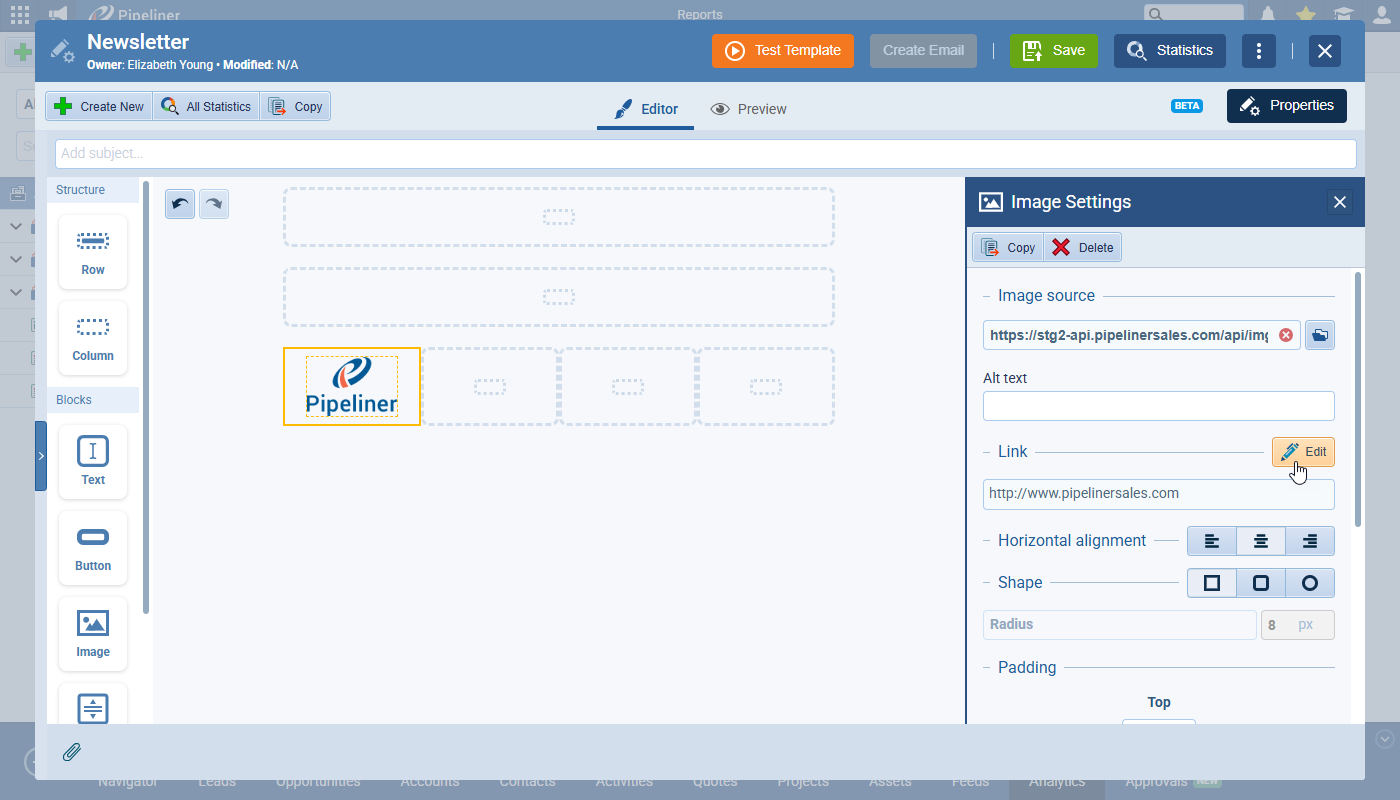 When inserting an Image into a template, users can now add a URL link to make the image clickable.