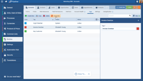 There is now the option to activate or deactivate “Tags” for all entities which support tags as well as Email tags. ⤵