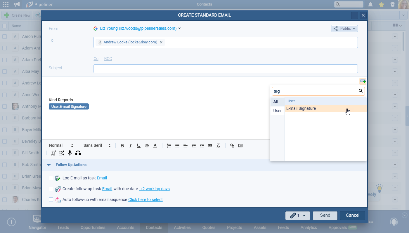 In the email editor, the user can use a new personalization field — “Email Signature“. ⤵
