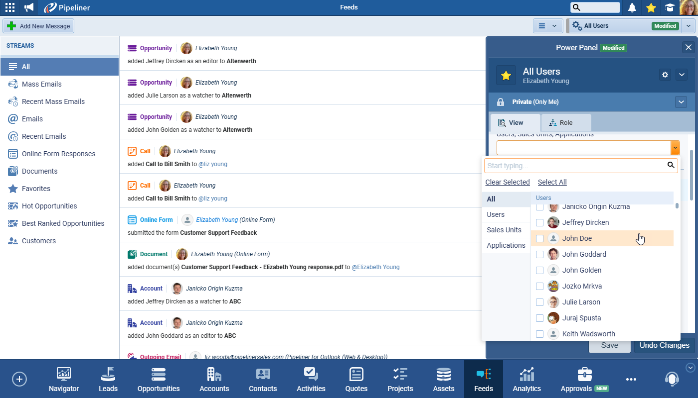 In the Feeds filter within a record and from the main Feeds menu, the “Actor (user)” filter has been replaced with a multi-select component with categories to allow more flexible filtering of feeds. ⤵
