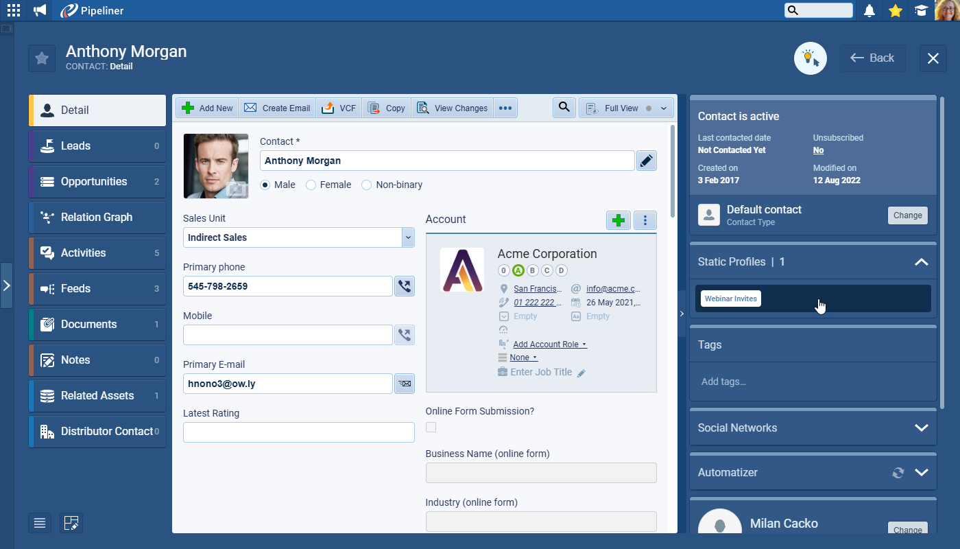 The “Static Profiles” field is also available when using “Bulk Update” and “Automatizer” giving an option to add records to static profiles automatically.