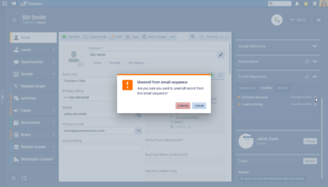 The new “History” tab allows the user to track all completed and unenrolled sequences in the new “History” tab, giving a full overview of past enrollments. If there is no enrollment history, the tab will display the message “No History of Enrolled Sequences”.