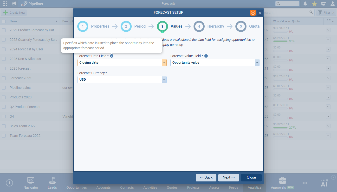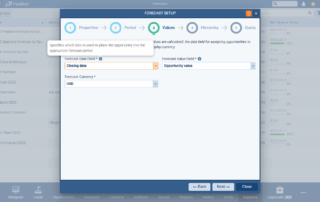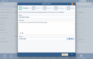 This release includes significant improvements to the ForecastingForecasting Forecasting is a prediction or calculation of a trend or event likely to occur in the future based on qualitative, quantitative and historical data as well as emergent but relevant factors. tool. The primary changes include a new multi-step wizard for forecast creation with descriptive text to better explain what happens in each step, an overhaul of QuotaQuota Quota is a predefined benchmark indicating the amount of sales a selling unit such as a sales rep or a regional sales team should achieve within a given period, often used as a measure of success, performance and eligibility for commissions and other rewards. management with “Simple” and “Custom” modes, and a enhancements to the Forecast Detail view. The goal is to streamline the setup process, provide more flexible quota handling, and improve the overall usability and clarity of the forecasting tool.